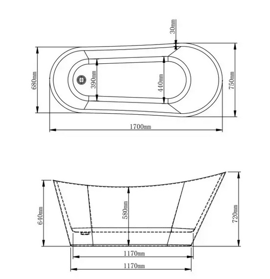 Ванна акрилова VBI Maella окремостояча 170х75 см білий VBI-070517