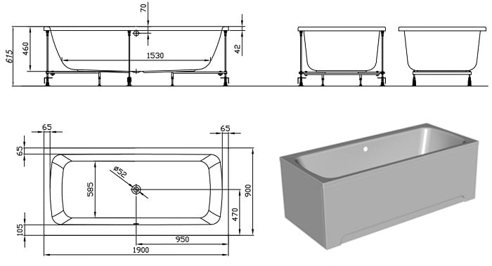 Ванна Kolpa San Bell 190x90 - чудова ванна з нестандартним рішенням, створена і проведена на заводі компанії Колпасан в Словенії. Володіє відмінним дизайном, прямокутної форми із закругленою формою в чаші. Довжина ванни становить 1 метр і 90 сантиметрів, ширина 90 сантиметрів і 46 см висота без урахування інсталяційною системи ніжок або каркасної системи. Злив ванни розміщений не класичним типом збоку, а по центру діаметром в 52 см. Матеріал ванни акрил посилений спеціальною сумішшюскловолокна і сполучних, посилюючи ванну, дно ванни зміцнюється спеціальної плитою. Колір ванни білий, зраджує відмінною гармонії в світлому інтер'єрі Вашої ванній кімнаті.