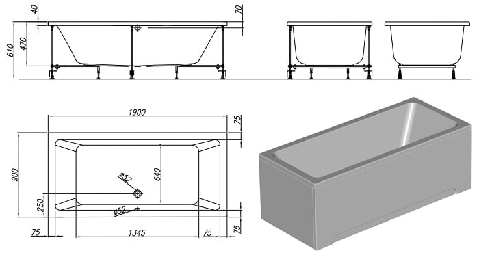 - довжина: 1900 мм