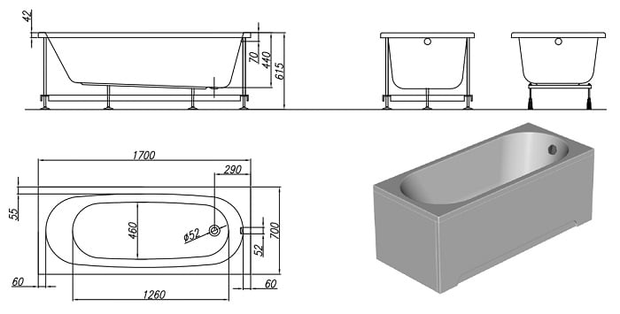 - довжина: 1700 мм