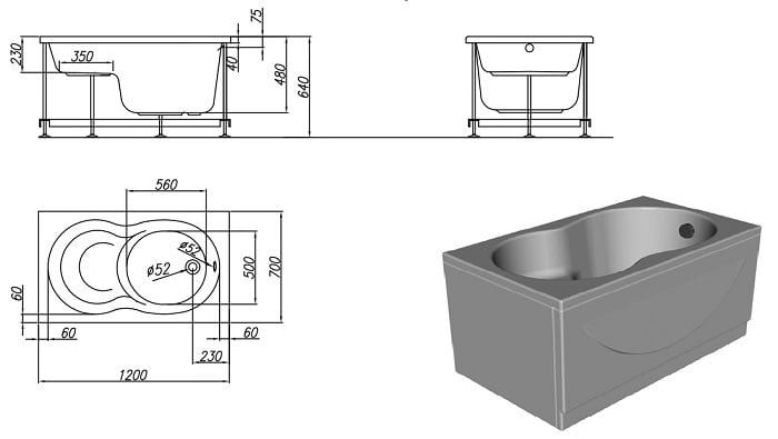 KolpaSan Cavatina 120x70 / S - невелика акрилова ванна об'ємом ємності всього 155 літрів знайде своє місце в простий, невигадливою ванній кімнаті. Це виріб буде свідчити про бездоганний смак і почуття стилю її власника. Ванна виконана в неземному білому кольорі, який лише додасть трохи лиску і розкоші Вашому інтер'єру. При бажанні ванна може бути доповнена різними супутніми елементами, такими як врізні змішувачі або шторки. KolpaSan Cavatina 120x70 може бутивстановлена в будь-якому місці Вашої ванної кімнати, всюди вона буде виглядати акуратно і шикарно. Виріб володіє зручною формою і чудовою практичністю, і точно знайде своє місце в будь-якій ванній кімнаті.