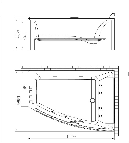 - Гідромасаж бічний - 5 квадратних форсунок 65 мм