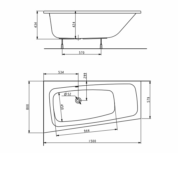 Ванна акрилова асиметрична Kolo Split 150х80 левосторонняя XWA1651000
