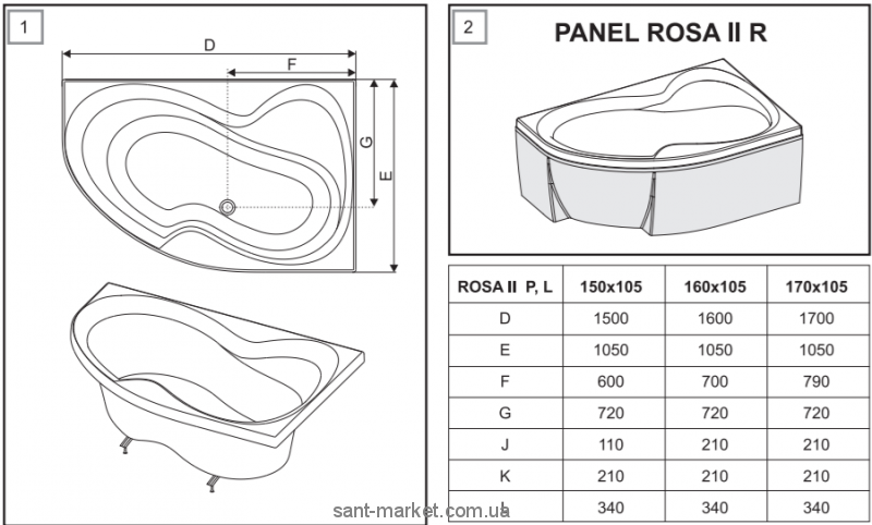 Надійна ванна в оновленому дизайні. Ванна Rosa II є продовженням попередньої моделі ванни із серії Rosa від студії всесвітньо відомих дизайнерів Design Storz. Крім незвичайної форми має унікально розроблену передню панель, що полегшує доступ до ванни. Безперечно, під час купання ванни Rosa забезпечують зручне лежання, а якщо їх ще доповнити шторою, то вони перетворяться на широкий душовий куточок. Їхня душова частина має широке плоске дно та інтегроване сидіння, що дозволяє приймати душ, стоячи, коли ширина верхньої частини в області Ваших плечей може бути до 105 см, залежно від конкретного розміру ванни. Удосконалити купання у ванні Rosa Вам допоможуть м'який підголовник або практичні ручки для зручного підняття з ванни. До ванн Rosa можна докупити й інші складові концепції Rosa: умивальник, меблі, змішувачі, штору та інші аксесуари, і все це в єдиному дизайні, що повторює форму самої ванни.