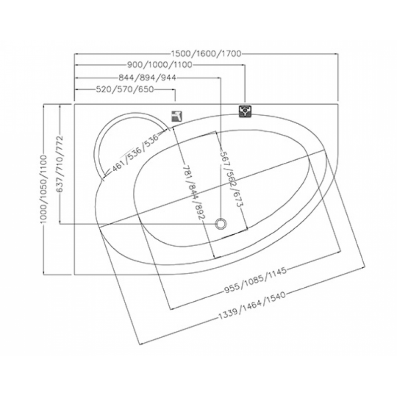 Додатково до ванни Asymmetric II можна замовити опору, зливний гарнітур і фронтальну панель.