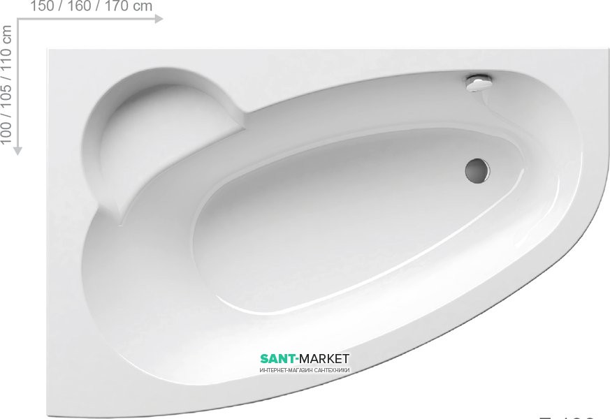 Ванна акрилова асиметрична Ravak колекція Asymmetric 150х100х47 L C441000000