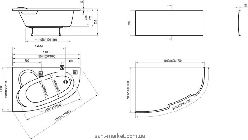 Ергономічна форма передньої панелі полегшує доступ до ванни. До ванни Asymmetric можна придбати (опору, стічний комплект для ванни), у разі потреби. Передню панель ванни не можна доповнити підголовником або шторою для ванни.