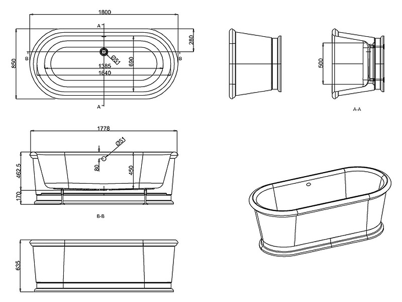 Ванна акрилова Burlington London 180x85 см зі зливом-переливом білий E18