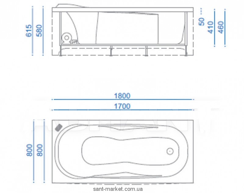 Ванна акрилова Glass колекція Lis 180x80х46 FF000C1U + слив ACC5301040 + ніжки