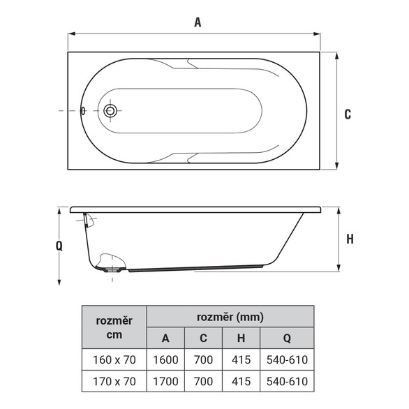 1) Ванна акрилова Jika Lyra Plus 160х70 см прямокутна білий