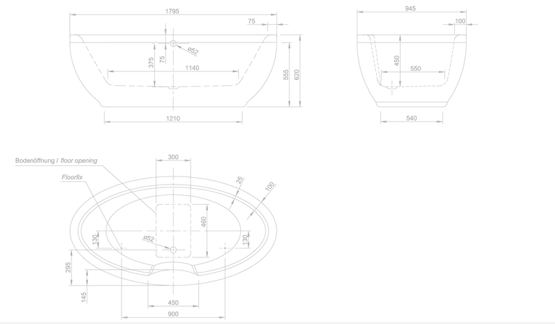 - Кожна ванна поставляється з докладним шаблоном для свердління статі