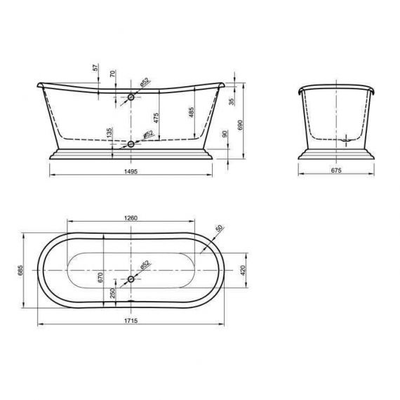 1) Ванна акрилова Knief Princess I 170х70 см окремостояча білий