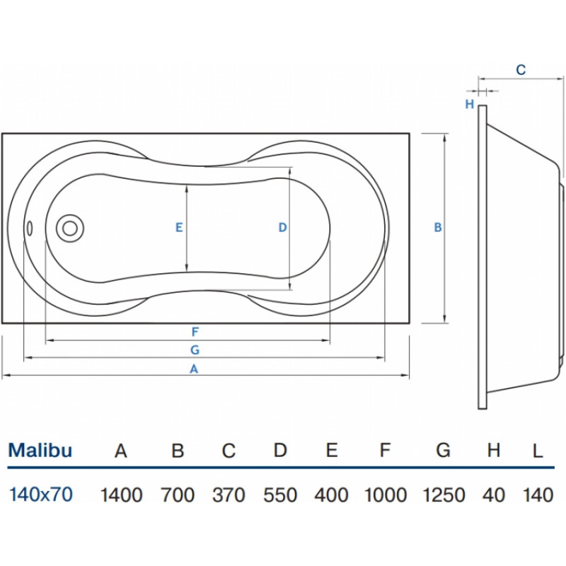 Прямокутна акрилова ванна Malibu (австрійського виробництва) - це сучасний дизайн, висока міцність і якість. Тому замовивши її, ви вже точно не пошкодуєте. Одним з її переваг також є саме невеликі габарити (обсяг - 140 л, ширина - 70 см, довжина - 140 см і висота - 38 см). Вага ванни йде 16 кг. Ви можете замовити також і додаткові зручності (систему гідромасажу, фронтальну і бічну панелі і т.д.). Унікальний дизайн ванни відповідає декору будь-якої ванної кімнати. Ванна Koller Pool Malibu дуже проста в установці іексплуатації.