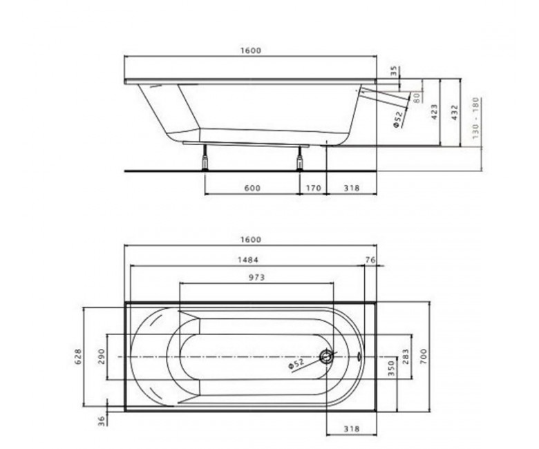 1) Ванна акрилова Kolo Opal Plus 160х70 см прямокутна