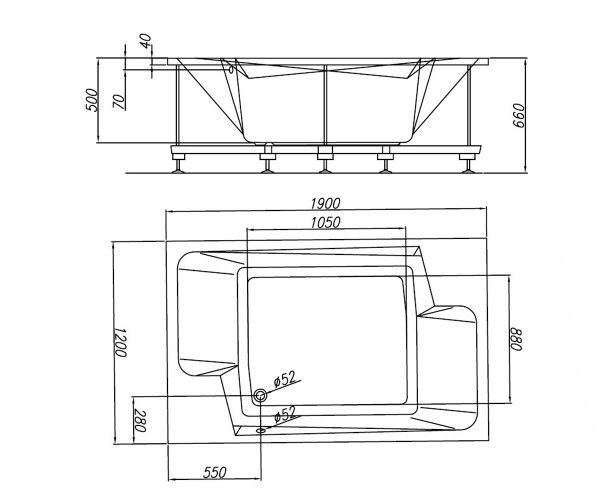 1) Ванна акрилова Kolpa-san Nabucco 190х120 см прямокутна білий