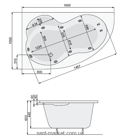Ванна акрилова кутова PoolSpa колекція Mistral 160х105 L ліва з рамою білийPWA3Y10ZS000000