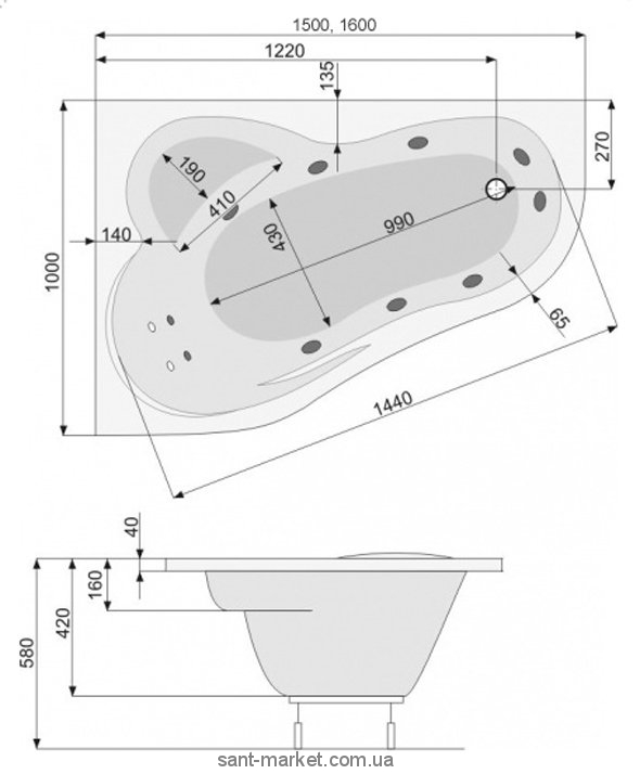 Оригінальний стиль виконання асиметричної акрилової ванни, у якої видима сторона виготовлена у вигляді хвилі, цілком може стати прикрасою Вашої ванної кімнати. Крім красивого зовнішнього вигляду,цей дизайн ще й принесе Вам комфортне прийняття душу, тому що ванна випускається відносно невеликих розмірів.