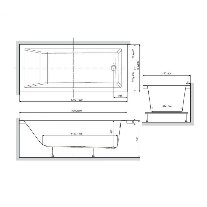 1) Ванна акрилова Novellini Calos 170x75 см прямокутна білий