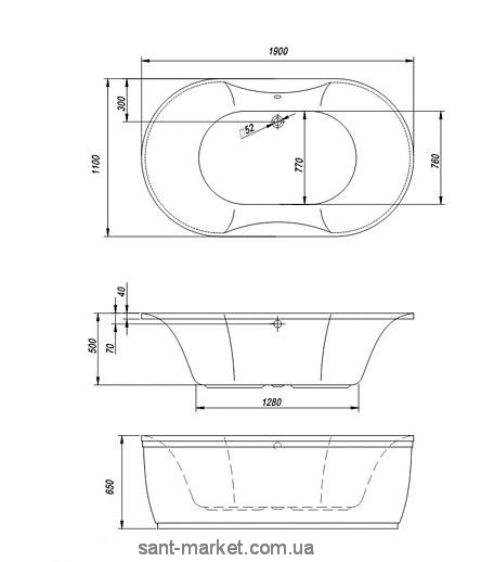 Ванна Gloriana 190х110х50 має овальну форму, що додасть Вашому інтер'єру витонченості. А також чудово підходить для великого санвузла, як у вбудованому варіанті (вбудувати в подіум або втопити в підлогу), так і у варіанті на каркасній основі з панеллю (цільна панель, акрилова). Борт ванни дозволяє врізати вбудований змішувач як 3-х компонентний, так і 5-и компонентний. Також існує шість систем гідроаеромасажу.
