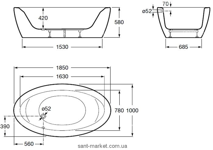 Овальна форма, стійка до впливу хімічних препаратів та засобів для чищення, має ефект антиковзання, який досягається завдяки використанню нековзного сантехнічного пластику.