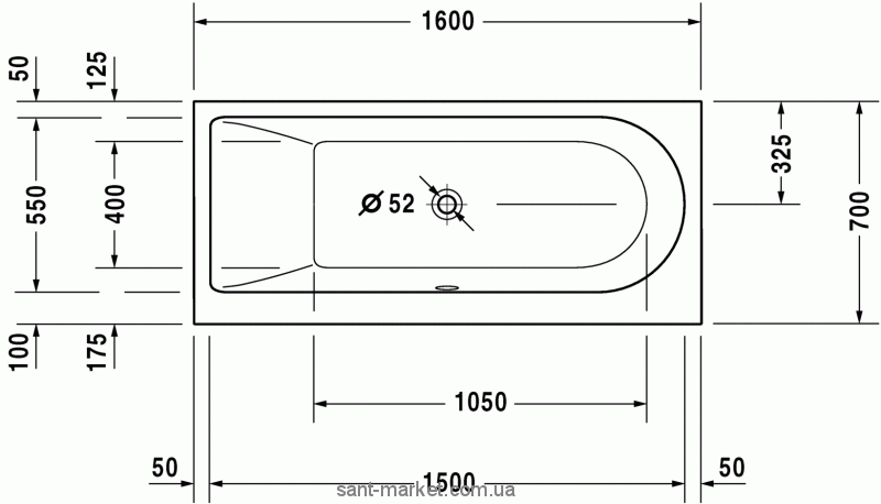 Ванна акрилова прямокутна Duravit колекція Darling New 160х70х48 L +700238000000