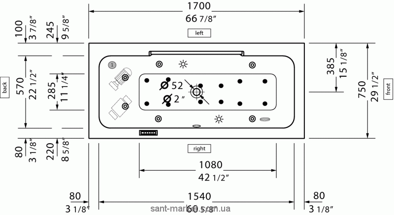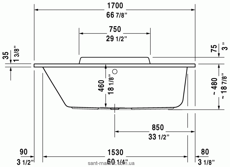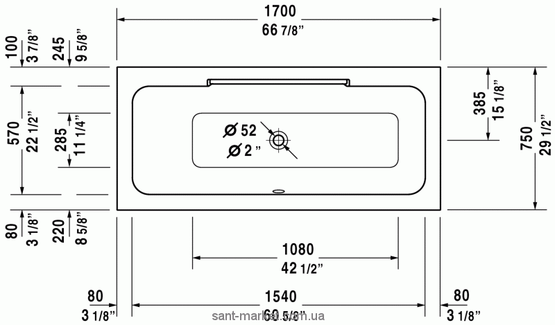 Ванна акрилова прямокутна Duravit колекція DuraStyle 170х75х48 R 700297000000000