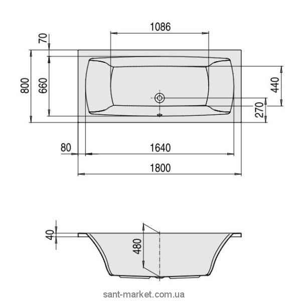 Ванна акрилова прямокутна Hoesch колекція Largo 180х80х64 3696