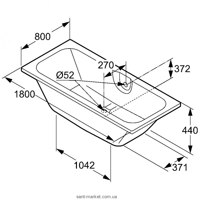 отвір зливу в середині;