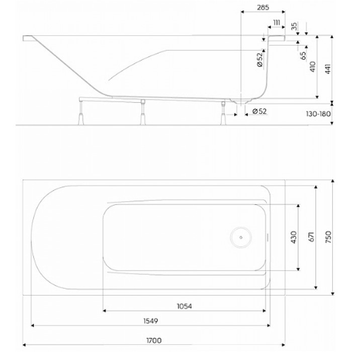 Ванна акрилова прямокутна Kolo Comfort Plus 170х75х44 з ніжками XWP1470000