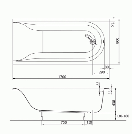 Дана ванна - це втілення класичних форм та простоти досконалості. Зручна форма в області спини дозволить повністю розслабитись, а звужені борти ванної гарантують великий обсяг води.