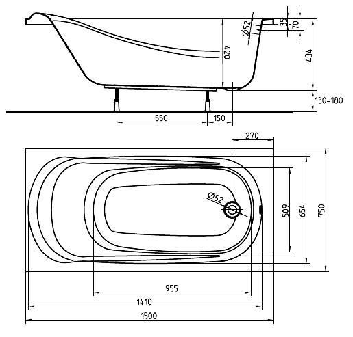 Ванна акрилова прямокутна Kolo Saga 150х75 з ніжками і елементами кріплення XWP3850000