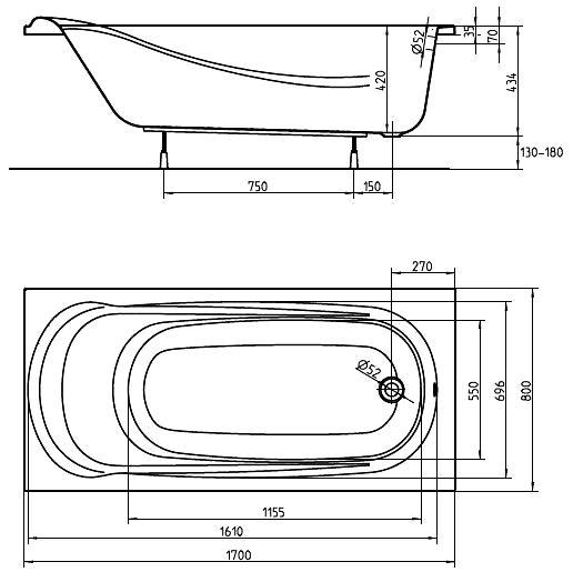 Ванна акрилова прямокутна Kolo Saga 170х80 з ніжками і елементами кріплення XWP3870000
