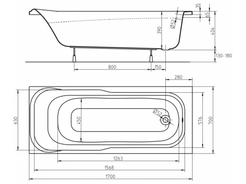 Ванна акрилова прямокутна Kolo Sensa 170х70х39 біла XWP357000N