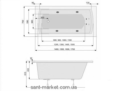 Ванна акрилова прямокутна PoolSpa колекція Muza 160х70 з рамою білий PWPD610ZS000000