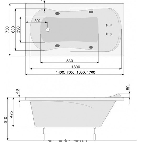 Прямокутна акрилова ванна Pool Spa 170х75см невеликих розмірів та призначена для маленьких ванних кімнат. Форма ванни із середини має овальну основу та підняту одну стінку, яка утворює собою підголовник. Менша стінка ванни має більший кут нахилу, який утворює собою спинку для плечей. Також додатково може бути укомплектована гідромасажною системою.