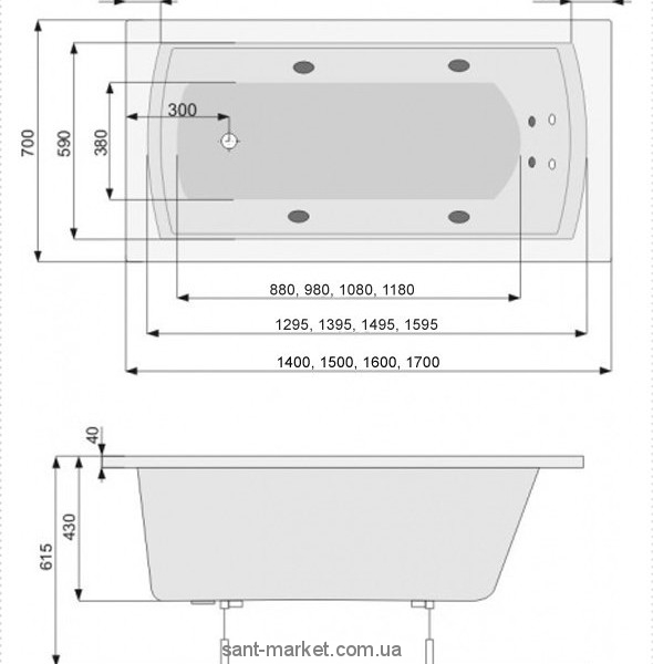 Ванна акрилова прямокутна PoolSpa колекція Linea 170х70х61 PWPNP..ZS000000 + рама