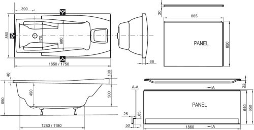 Ванна акрилова прямокутна Ravak колекція You PU-PLUS 175х85х61 C041000000