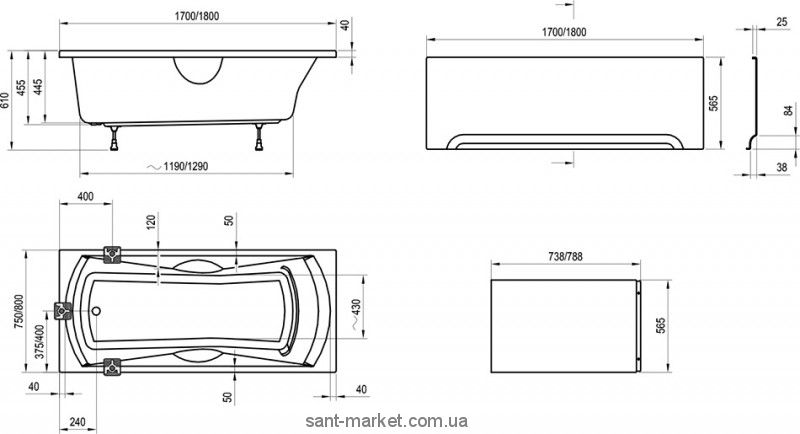 Ванна акрилова прямокутна Ravak колекція Sonata 180х80х47 CW01000000