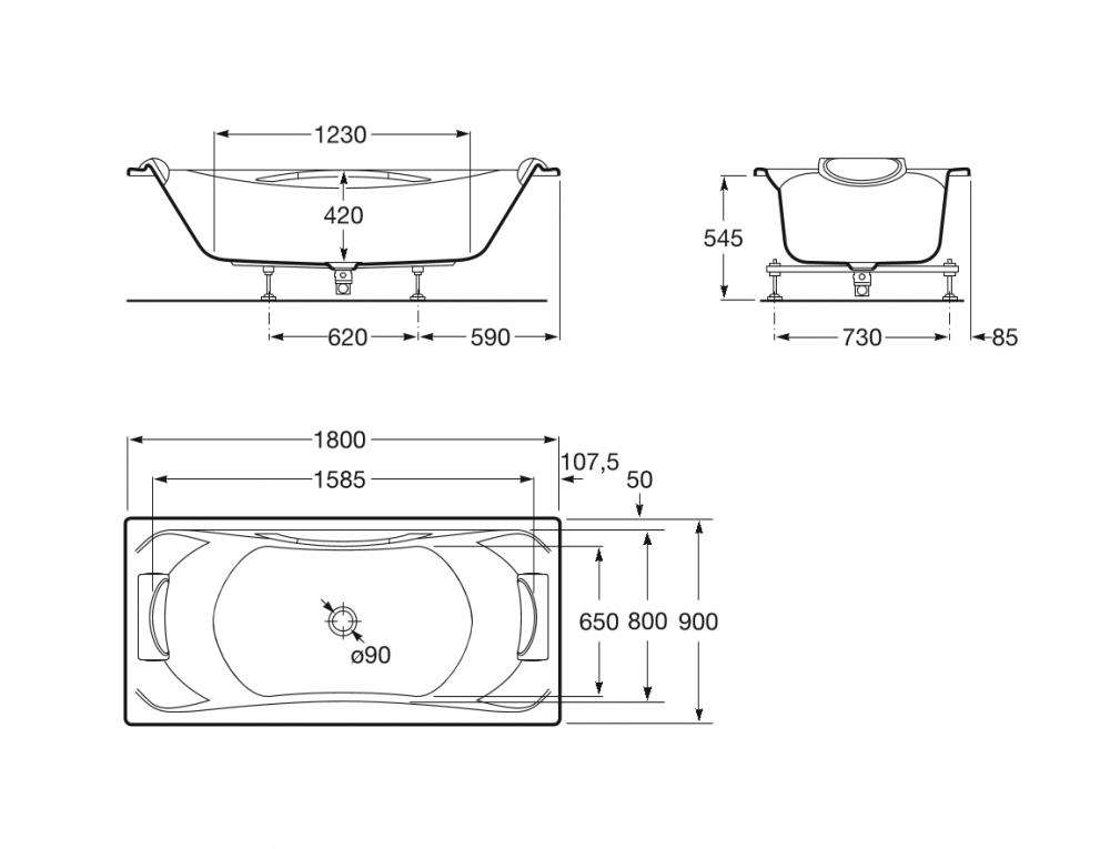 1) Ванна акрилова прямокутна Roca BeCool 180х90