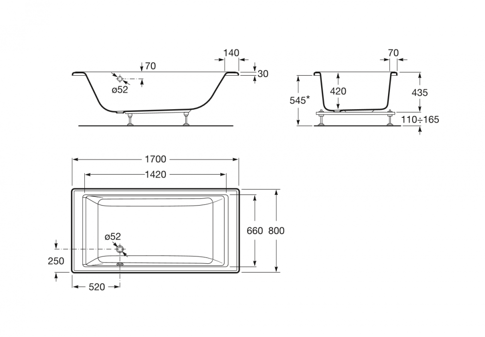 Ванна акрилова прямокутна Roca Vythos 170х80 з ніжками біла A247701000