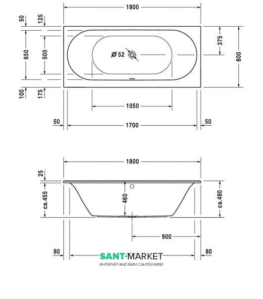 Ванна акрилова прямокутна з двома нахилами для спини Duravit Darling New 180x80х46 біла 700244000000000