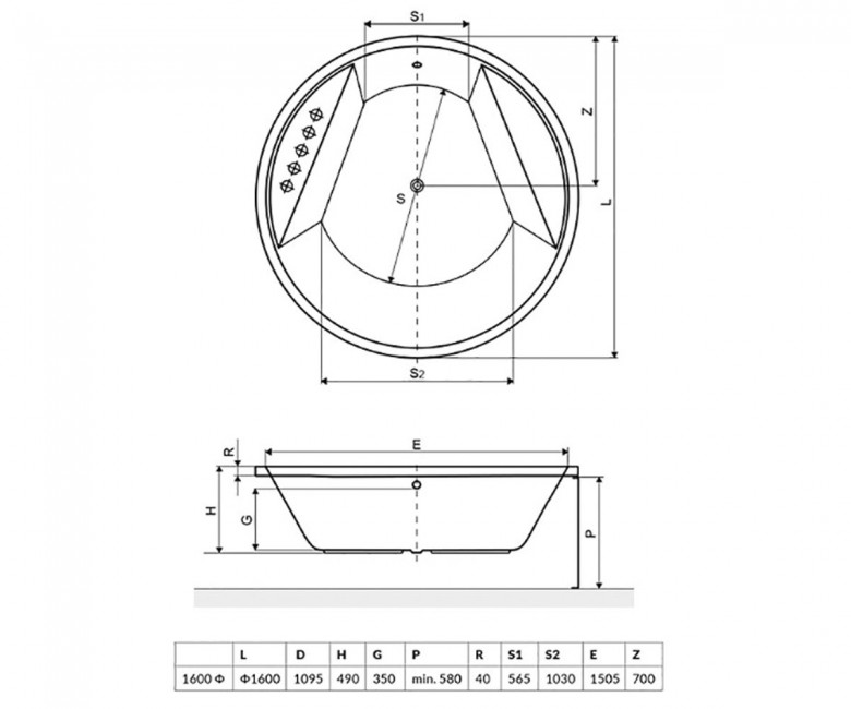 1 ) Ванна акрилова Radaway Meteora Ø 160 см окремостояча білий