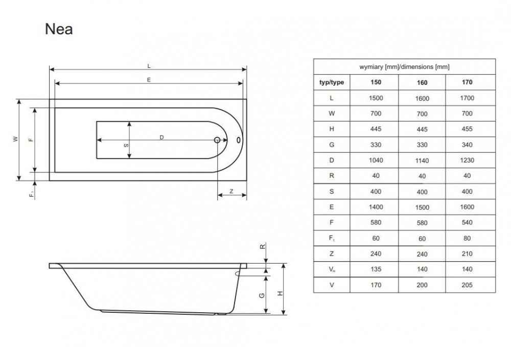 Ванна акрилова Radaway Nea 160х70 см з ніжками білий WA1-02-160x070U