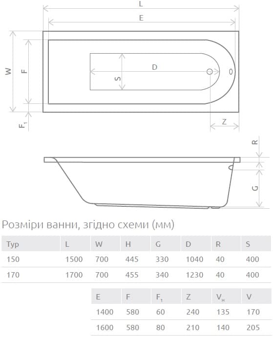 - Бездоганні розміри і форми ванн, які підійдуть в будь-яку ванну кімнату