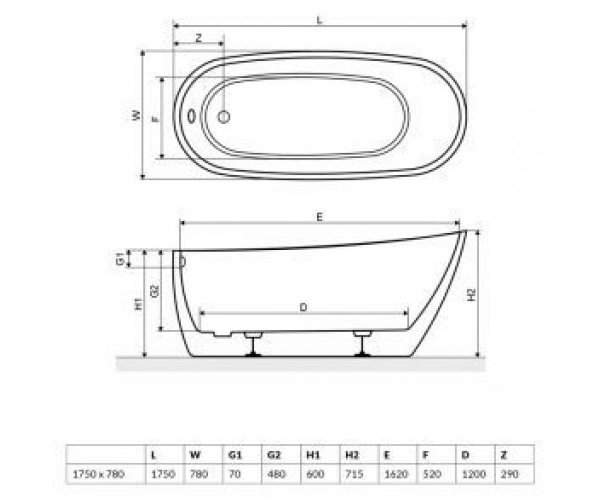 1) Ванна акрилова Radaway Nikia 175х78 см окремостояча білий