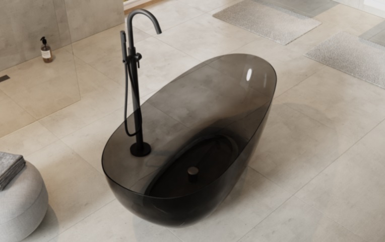 Ванна Besco Xara 160х75 см із сифоном клік-клак чорний мат ResiCast Carbon Grey #WAX-160-CGB
