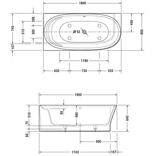 1) Ванна Duravit Cape Cod зі штучного каменю DuraSolid 190х90 см білий