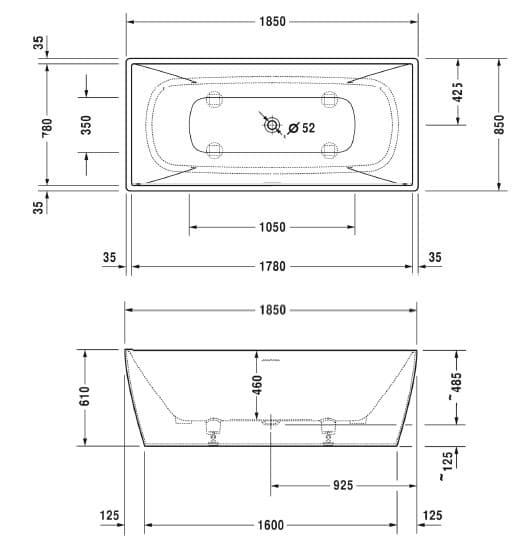 1) Ванна Duravit DuraSquare зі штучного каменю DuraSolid 185х85 см білий