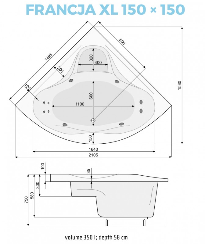Акрилові ванни PoolSpa Francja XL - це поєднання високої європейської якості та елегантного дизайну. Така ванна, безсумнівно, займе гідне місце у Вашій ванній кімнаті. У даній серії представлені симетричні кутові ванни. Кожна модель має плоске овальне дно, підлокітники, поличку для сидіння і невеликі полички для косметики і аксесуарів. Всі ці елементи роблять ванни Francja XL практичними і дуже зручними. Акрил, з якого виготовлені ванни, має товщину 4 мм. Цей матеріал створює міцну і легку конструкцію, яка збереже свій первозданний вигляд ігігієнічність на довгі роки. Крім того, така товщина акрилу дозволяє без труднощів встановити гідромасажні обладнання і зробити ванну ще більш комфортною.