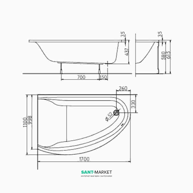 Сучасний дизайн у поєднанні із зручними та стильними аксесуарами роблять ванну Mirra 170х110 незамінним елементом ванної кімнати.